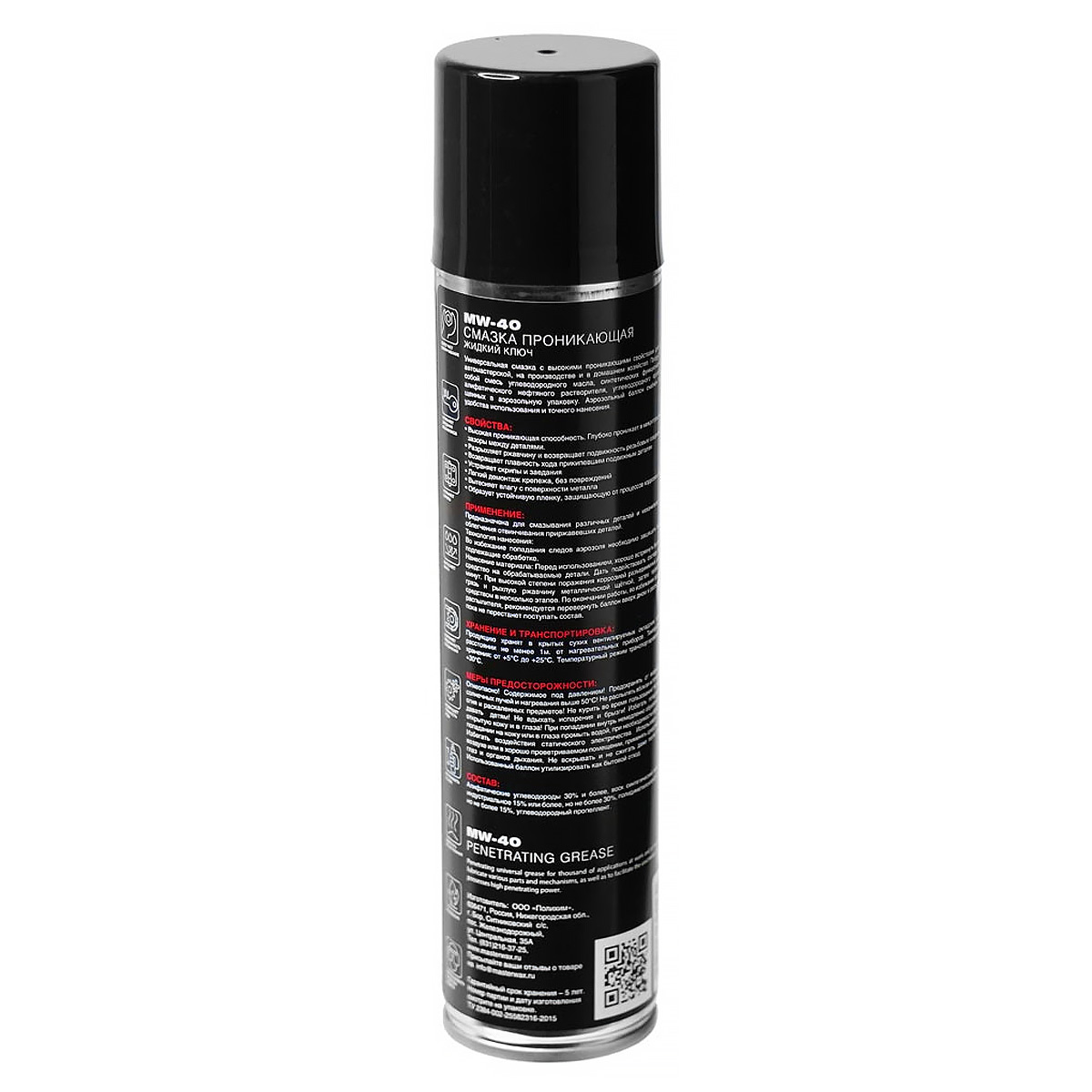 Аэрозольная проникающая смазка MW-40 MASTERWAX обладает свойствами проникать, растворять, смазывать, защищать. Жидкий ключ MW-40 облегчает разъединение деталей механизмов, глубоко проникает в приржавевшие и прикипевшие соединения, смазывает и освобождает их. Восстанавливает подвижность узлов механизмов, смазывая и очищая поверхности скольжения деталей. Вытесняет влагу с металлических поверхностей, создает защитную пленку против коррозии. Удаляет различную грязь, жир, лёгкую коррозию, битумные пятна. Сохраняет свои свойства при температурах от -40°C до +60°C. Не оказывает вредного воздействия на лакокрасочные покрытия, резину, пластмассы. В комплекте с баллоном идет трубочка длиной 100мм для удобного смазывания уплотнителей, петель, личин замков и т.д.