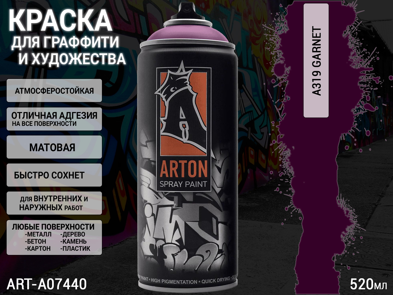 1. A319 гранат/GARNET краска для граффити аэрозоль ARTON (520мл)1