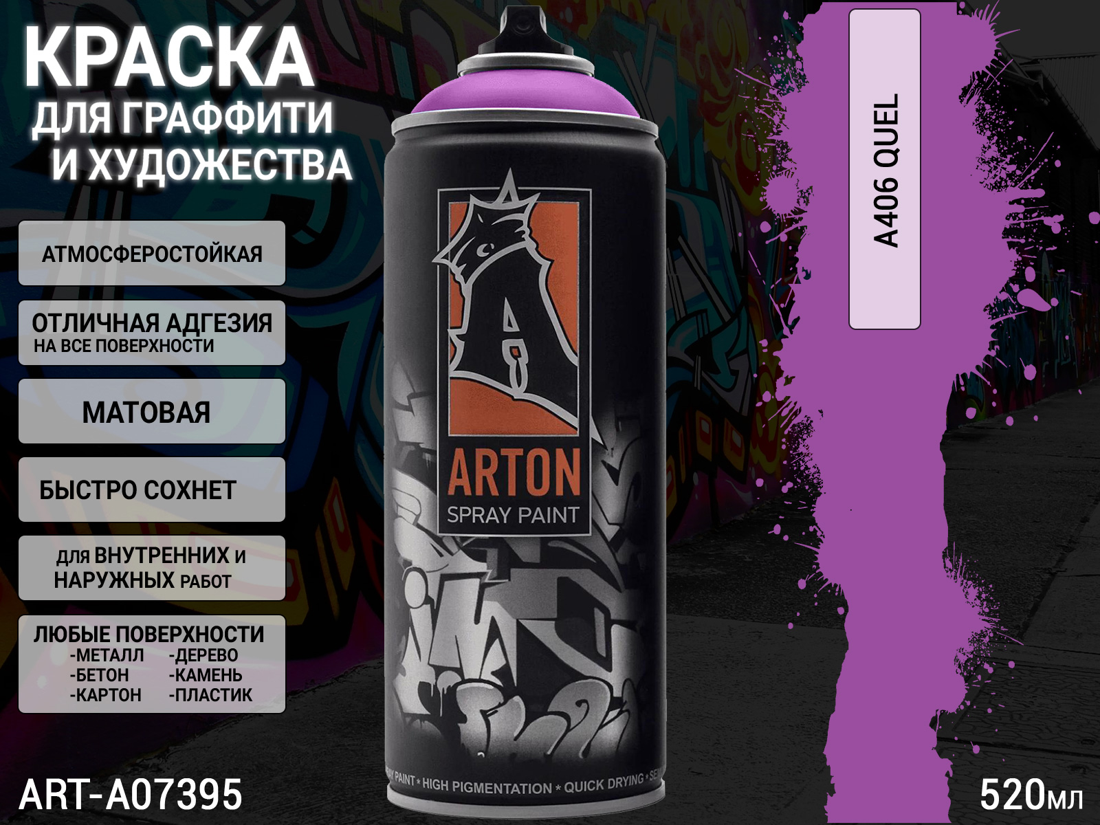 1. A406 QUEL краска для граффити аэрозоль ARTON (520мл)1