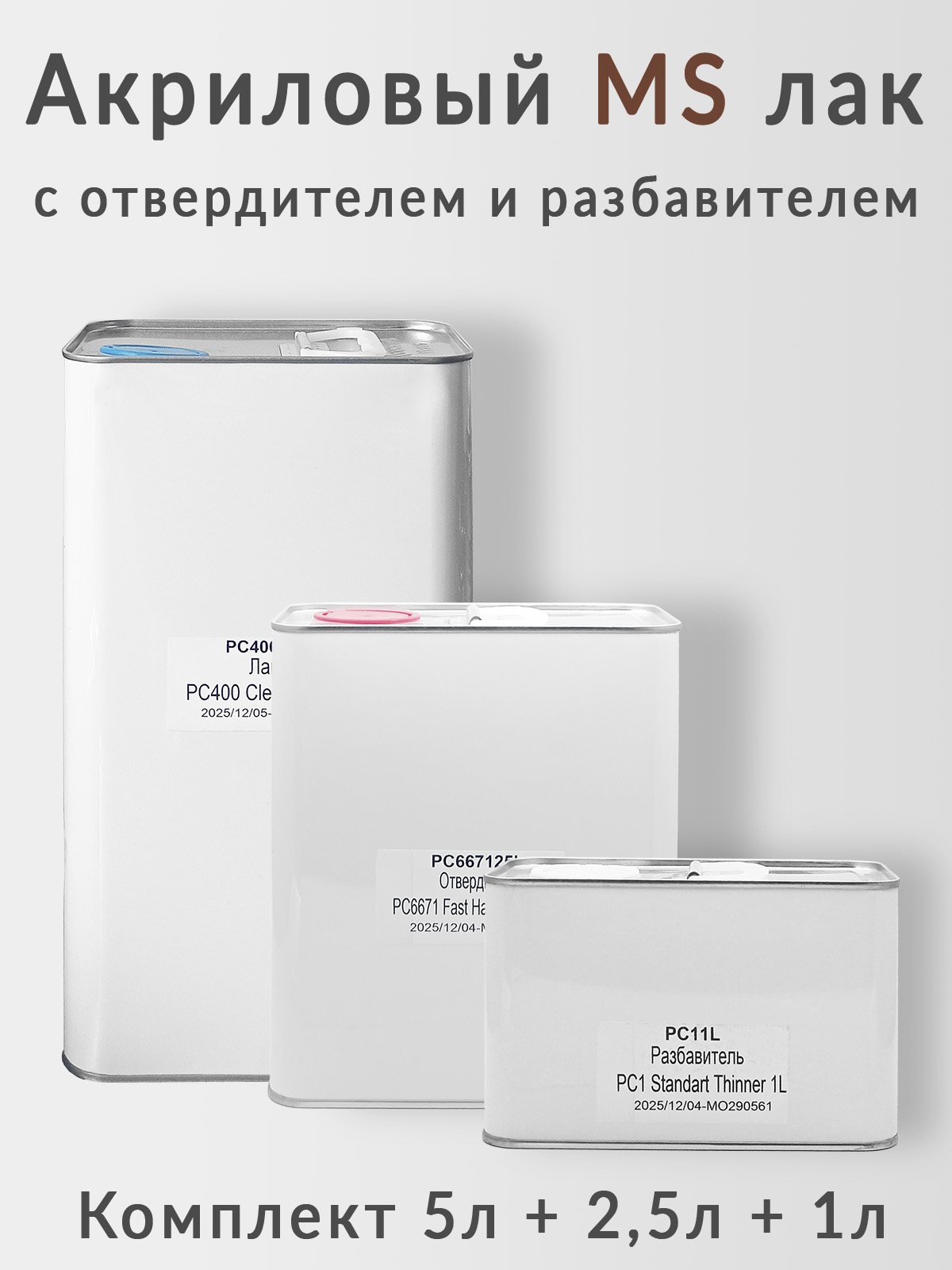 Лак MS 2+1 PC-400 c отвердителем и разбавителем (комплект, 5л+2,5л+1л)