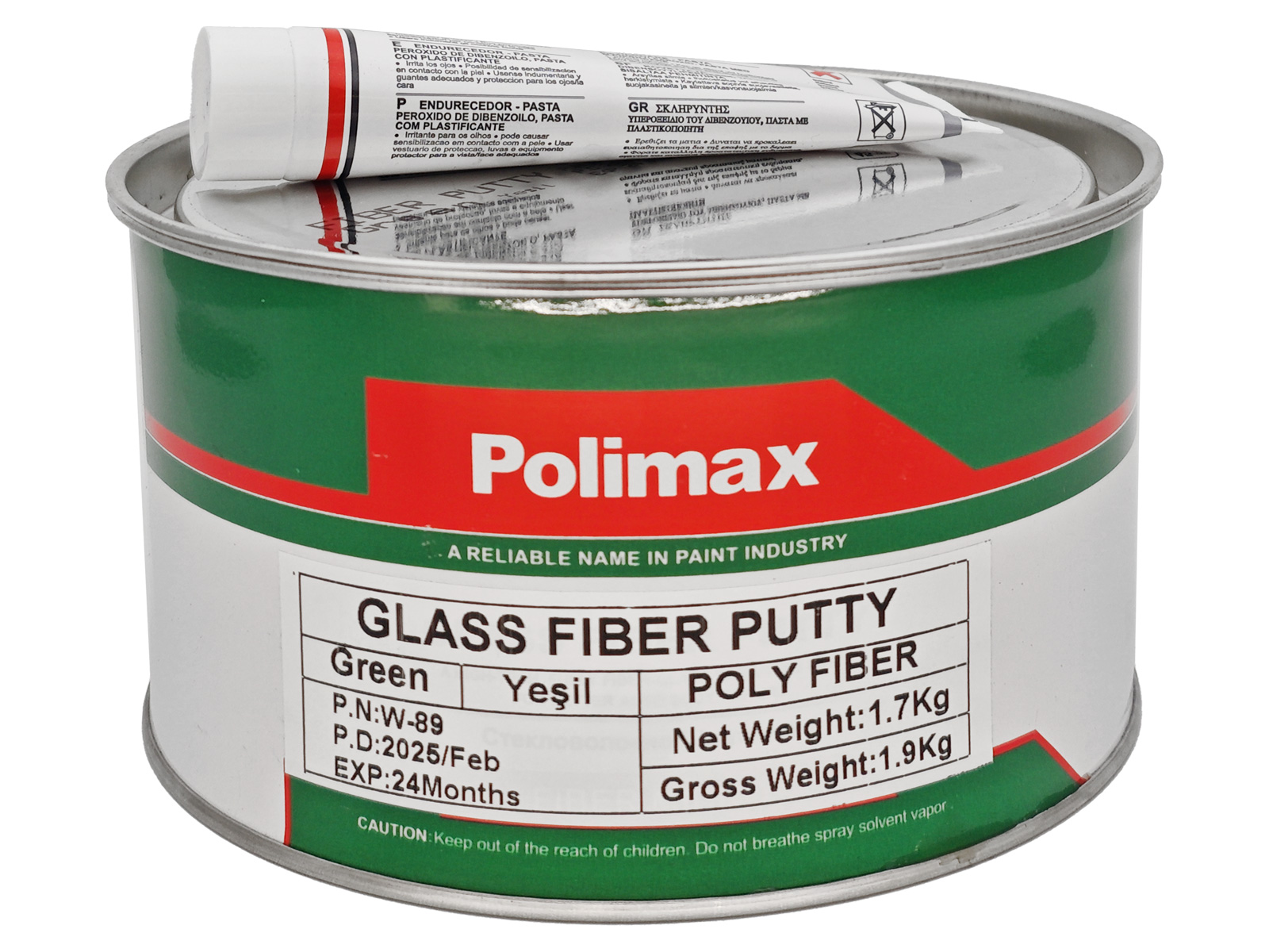 Шпатлевка со стекловолокном FIBER PUTTY POLIMAX - двухкомпонентная полиэфирная шпатлевка повышенной прочности с наполнителем из стекловолокна с превосходными адгезионными, формообразующими и шлифовальными свойствами. Шпатлевка предназначена для ремонта изделий из металла, дерева, бетона и твёрдого пластика, прекрасная адгезия к голому металлу, алюминию, а также к оцинкованным металлическим поверхностям. Имеет кремовую текстуру для легкого нанесения. Подходит для восстановления утраченных участков поверхности и в случае значительных глубоких дефектов.