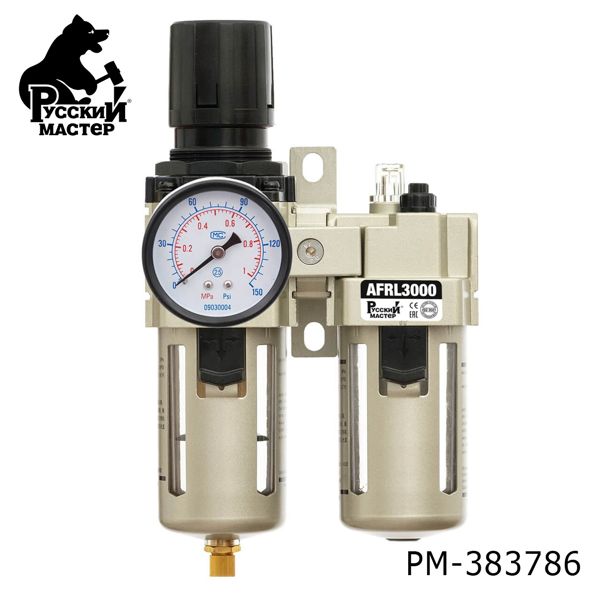 Фильтр-влагоотделитель AFRL3000 с регулятором давления, манометром и лубрикатором 1/4" 1700 л/мин РУССКИЙ МАСТЕР