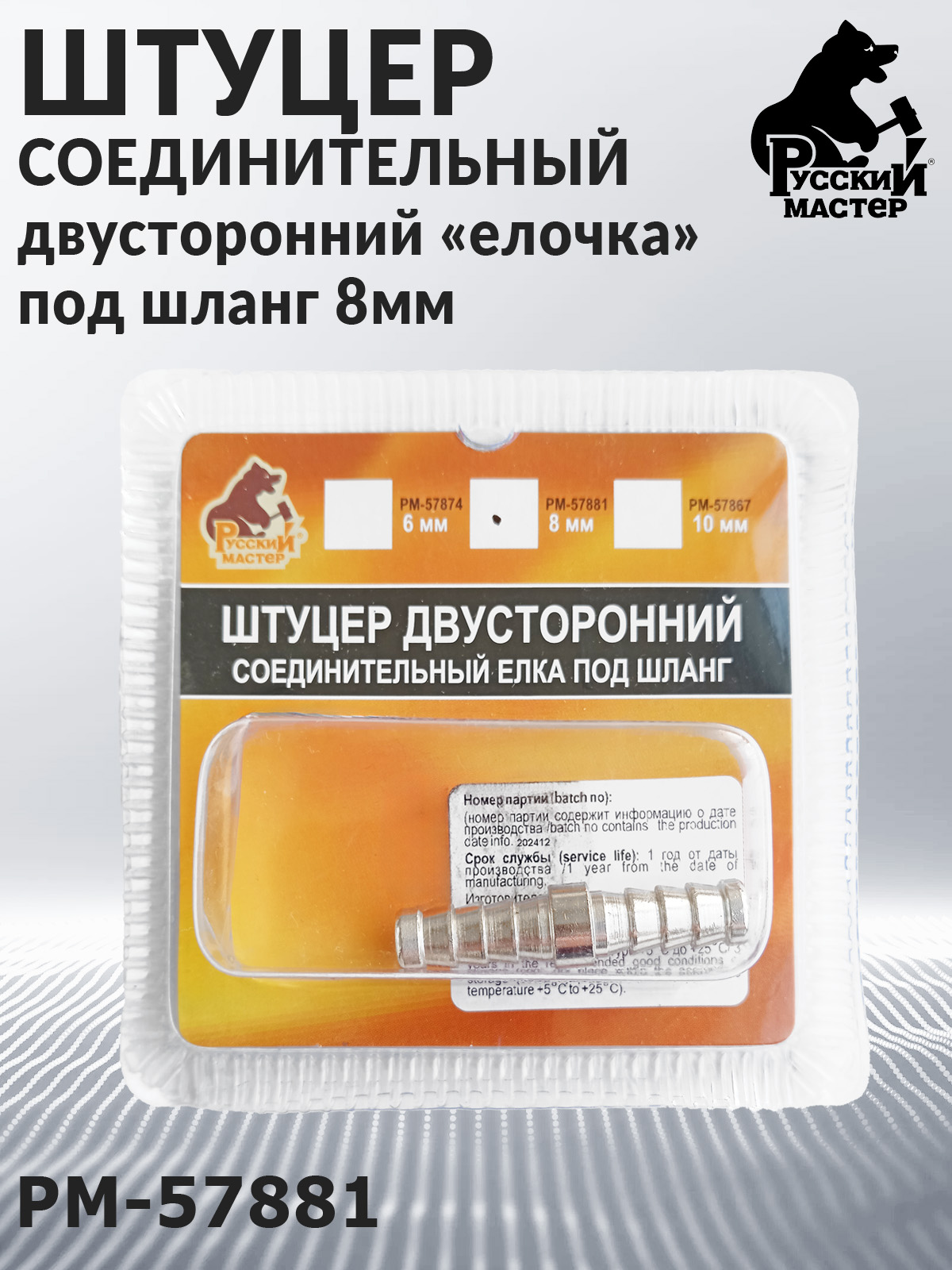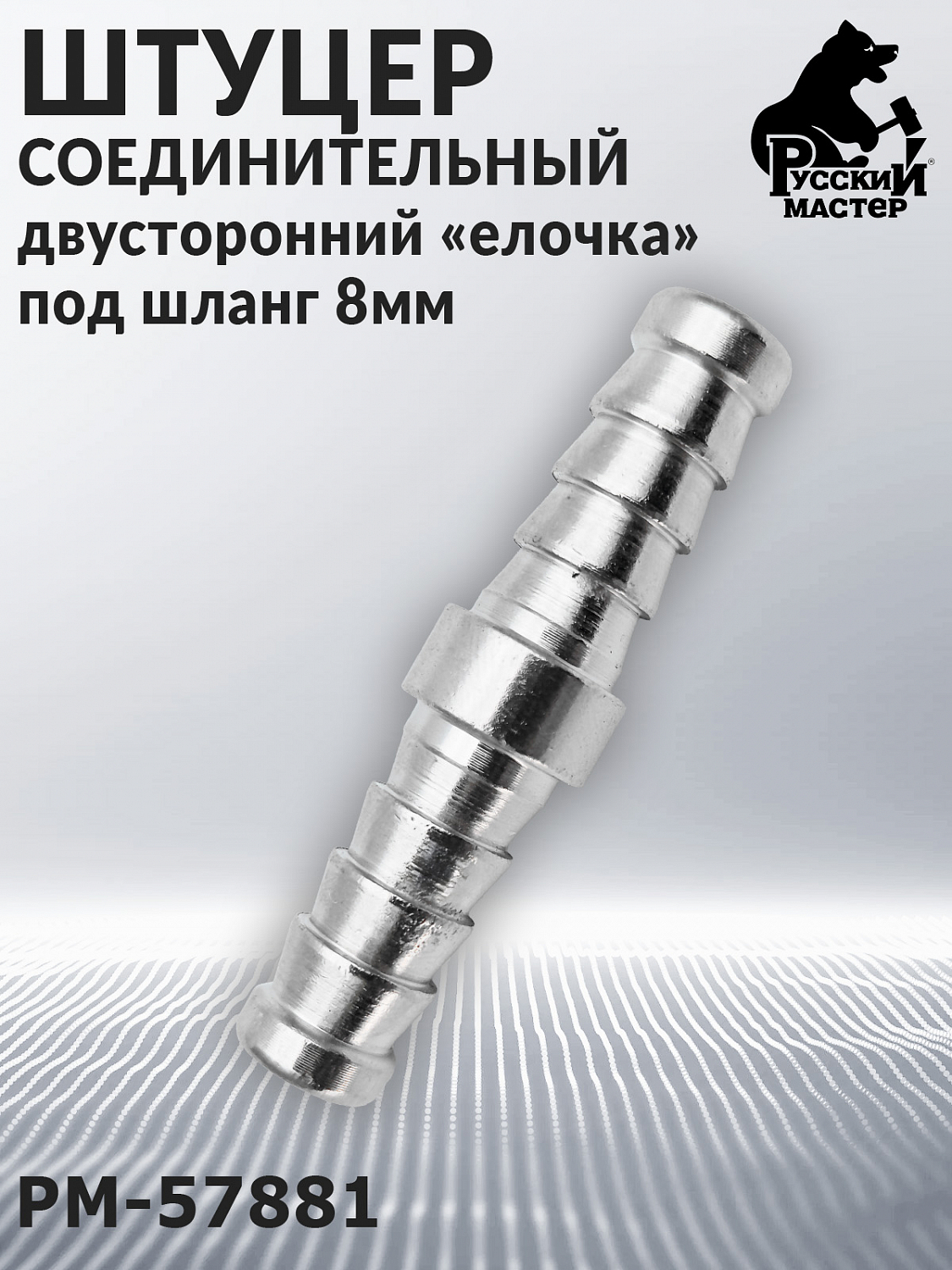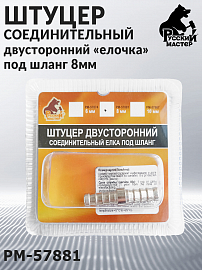 Штуцер под шланг - елочка 8мм двухсторонний РУССКИЙ МАСТЕР (блистер)