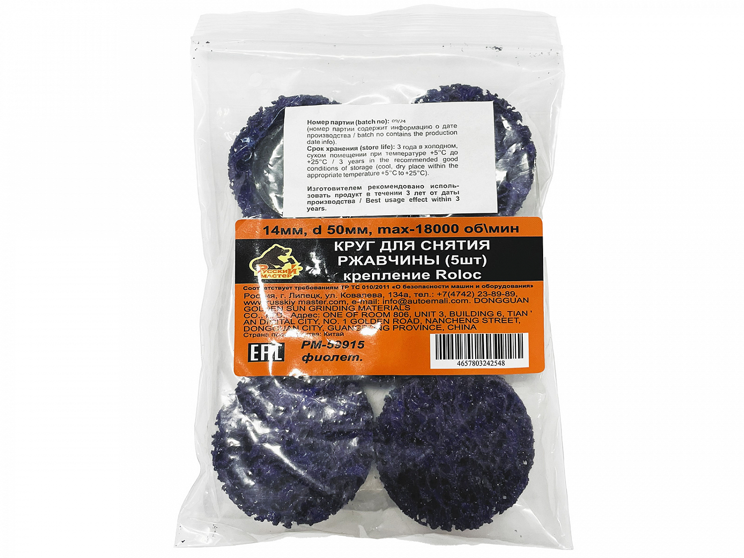 Круг для снятия ржавчины 50мм фиолетовый толщина 14мм (крепление Roloc) РУССКИЙ МАСТЕР