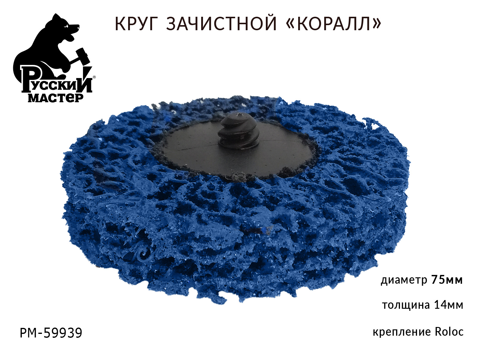 Круг для снятия ржавчины 75мм синий толщина 14мм (крепление Roloc) РУССКИЙ МАСТЕР
