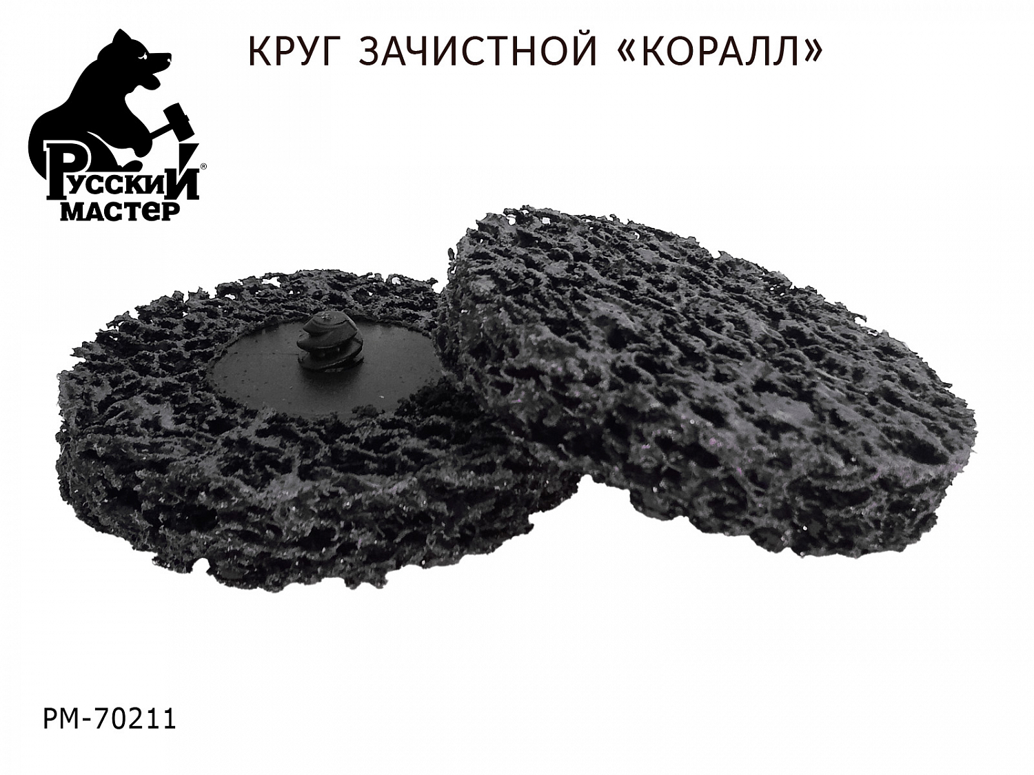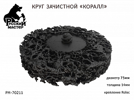 Круг для снятия ржавчины РУССКИЙ МАСТЕР (PM-70211) изготовлен из объёмные синтетических волокон с напылением абразива.