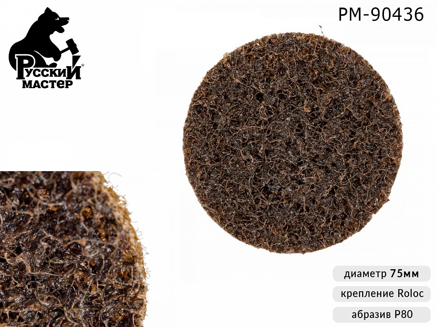 1. диск зачистной Р080 диаметр 75мм коричневый (крепление Roloc) РУССКИЙ МАСТЕР1