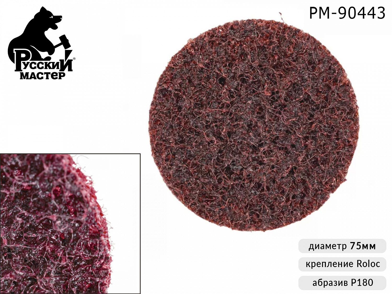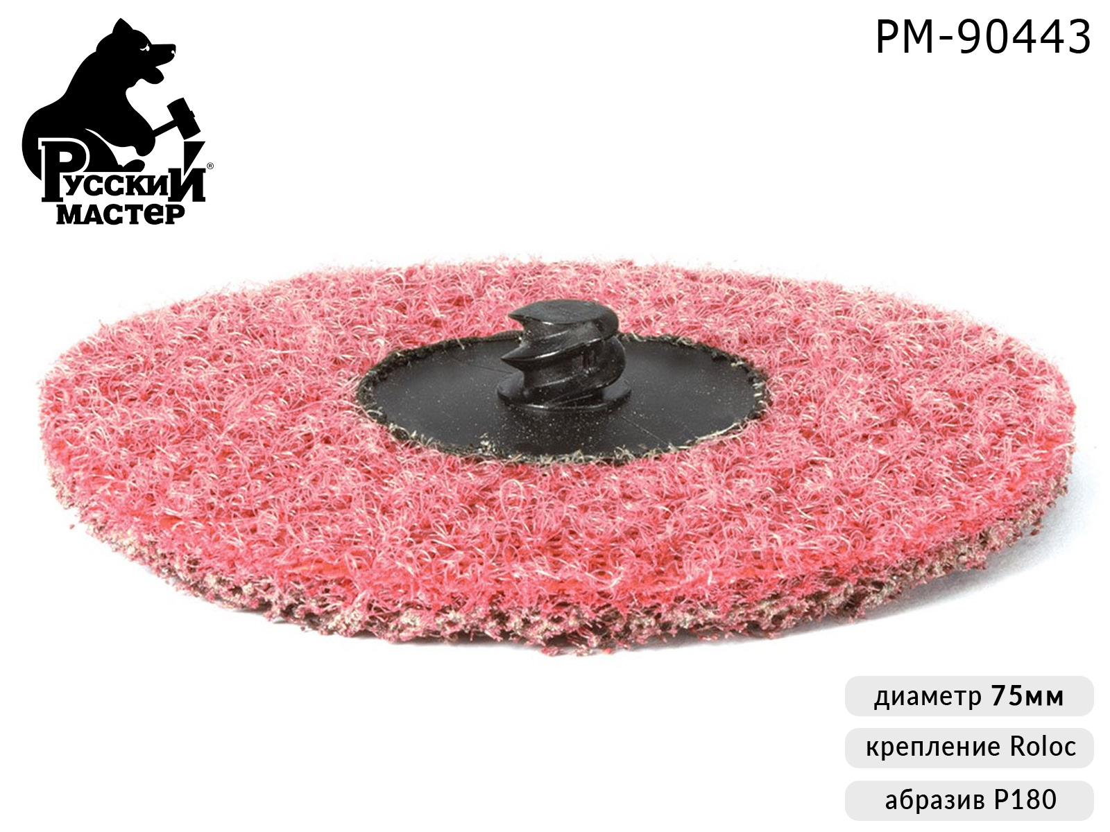 1. диск зачистной Р180 диаметр 75мм красный (крепление Roloc) РУССКИЙ МАСТЕР1