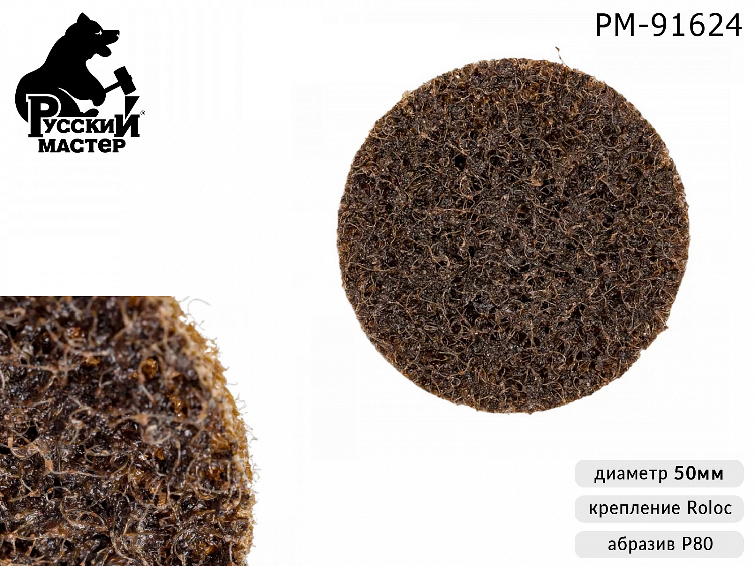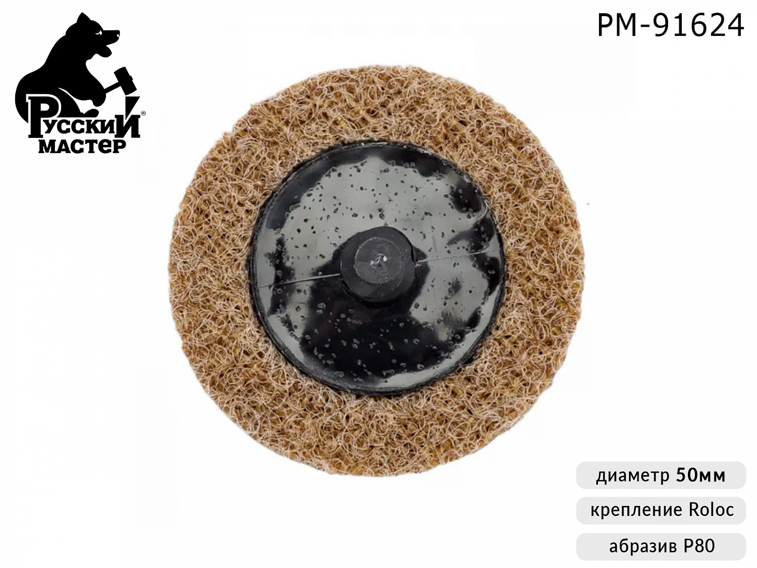 Диск зачистной Р080 диаметр 50мм коричневый (крепление Roloc) РУССКИЙ МАСТЕР