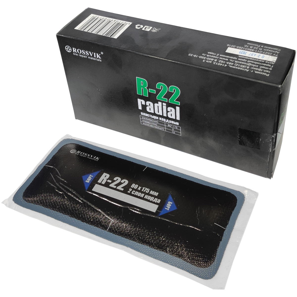 Радиальная кордовая заплатка R-22 холодной вулканизации ROSSVIK предназначена для ремонта всех типов радиальных бескамерных и камерных шин легковых автомобилей, грузового и пассажирского транспорта, сельскохозяйственной, карьерной и землеройной техники. Пластырь обеспечивает надежный и долговечный ремонт в любом ремонтопригодном месте шины. При установке пластырей "холодным" способом для достижения лучших результатов используйте пневмомолоток.