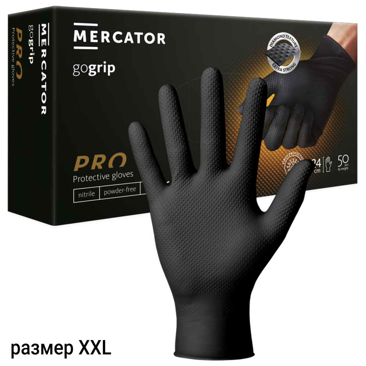 Перчатки нитриловые черные XXL текстурированные GOGRIP MERCATOR (1шт)