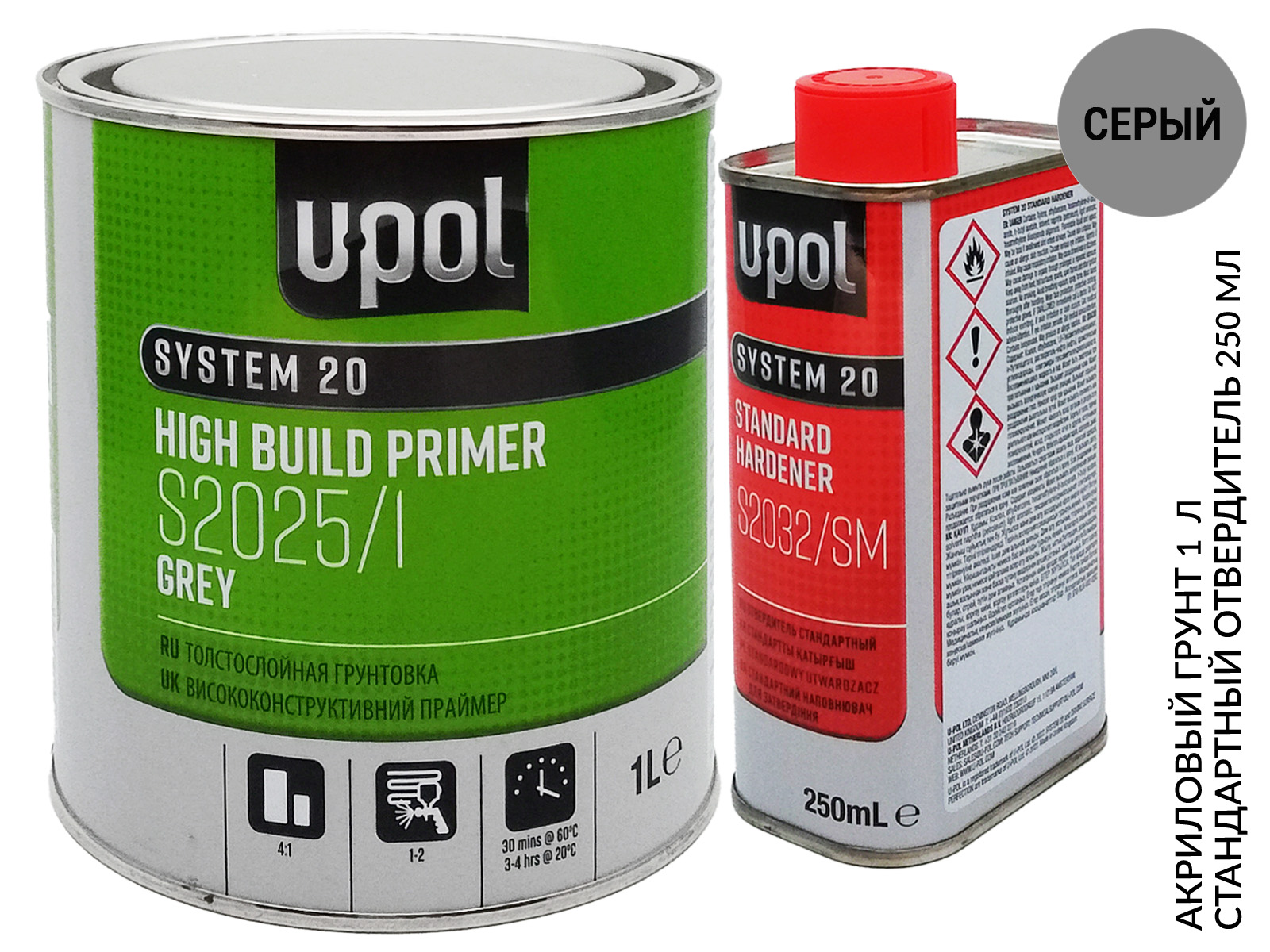 Грунт 4+1 серый S2025 выравнивающий акриловый с отвердителем 2032 U-POL (1л+0,25л)