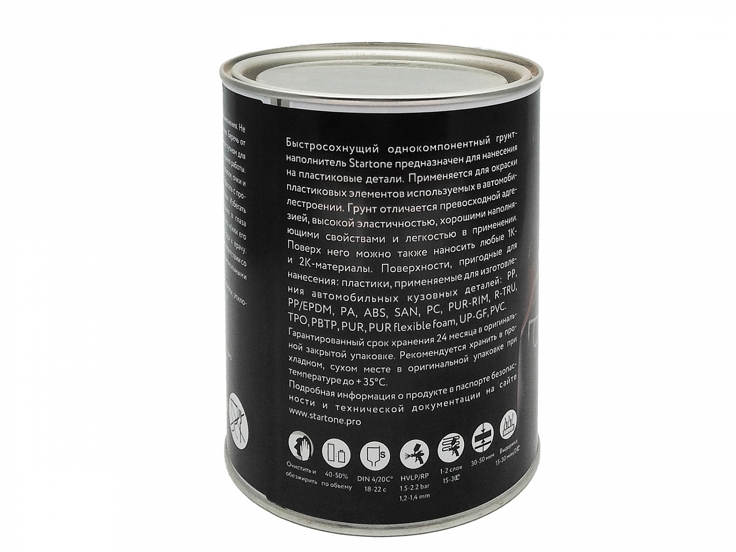Быстросохнущий однокомпонентный грунт-наполнитель по пластикам STARTONE применяется для окраски пластиковых элементов используемых в автомобилестроении. Грунт отличается превосходной адгезией, высокой эластичностью, хорошими наполняющими свойствами и легкостью в применении.
