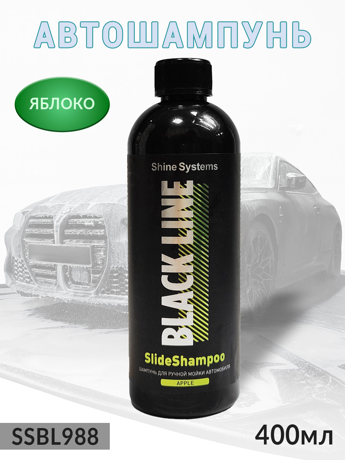 1. автошампунь для ручной мойки BLACK LINE SlideShampoo ЯБЛОКО деликатный SHINE SYSTEMS (400мл)1