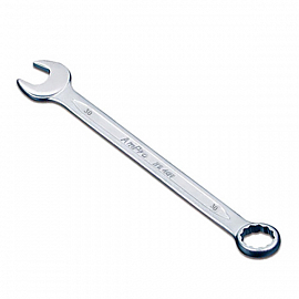 Ключ комбинированный 30мм AMPRO T40130 обладает высоким запасом прочности, так как полностью выполнен из надежного материала - углеродистой стали. Ключ сочетает два типа головок - рожковую и накидную. Инструмент подходит для частого и интенсивного использования в профессиональной сфере деятельности, в особенности для ремонта и обслуживания автомобилей.