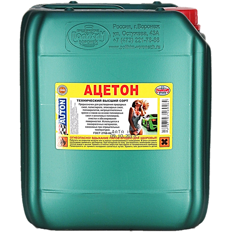 Ацетон ПОЛИХИМ-ВОРОНЕЖ предназначен для растворения природных смол, полистирола, эпоксидных смол, полиакрилатов, нитроцеллюлозных красок и лаков на основе полимерных смол и виниловых полимеров, очистки и обезжиривания поверхностей. Используется в лакокрасочных материалах наносимых, при отрицательных температурах.