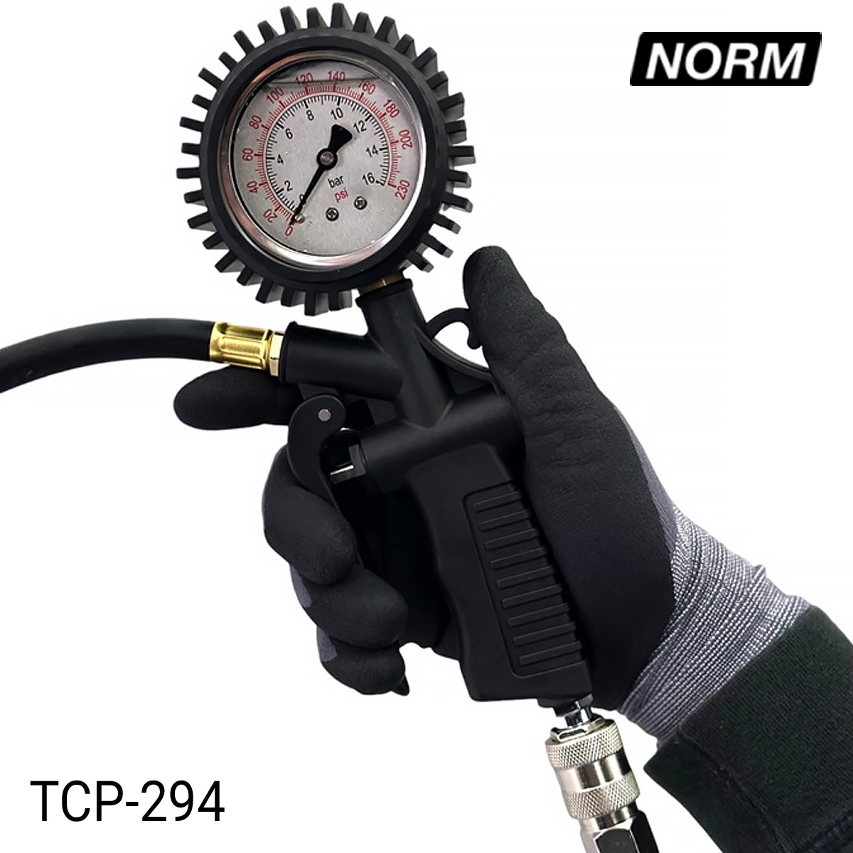 Пистолет для подкачки шин НОРМ TCP-294 предназначен для подкачки и спуска воздуха, контроля и регулирования давления в колесе. Пистолет снабжен надежным маслянным стрелочным манометром до 16 бар. Гибкий шланг длиной 30см обеспечивает легкую работу в узких и труднодоступных местах.