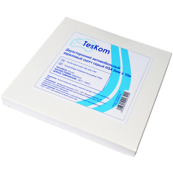Скотч двухсторонний 0,8мм серый TESKOM TEC320020910 - профессиональная двухсторонняя клейкая лента с очень высокой адгезией к металлам, стеклу и большинству пластиков, предназхначена для монтажа молдингов, дефлекторов, эмблем, защитных накладок. Устойчива к растворителям. Начальная адгезия позволяет проводить корректровку на элементе.