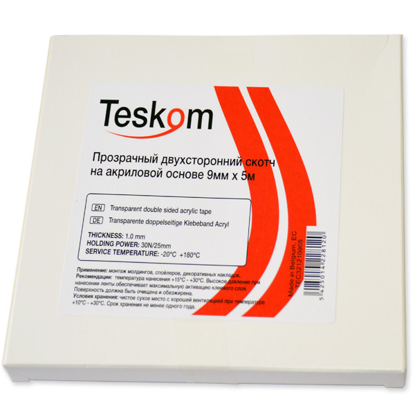 Двухсторонняя прозрачная клейкая лента с высокой адгезивной силой TESKOM TEC321210905 предназначена для установки молдингов, спойлеров и различных декоративных накладок. Качество «профи».