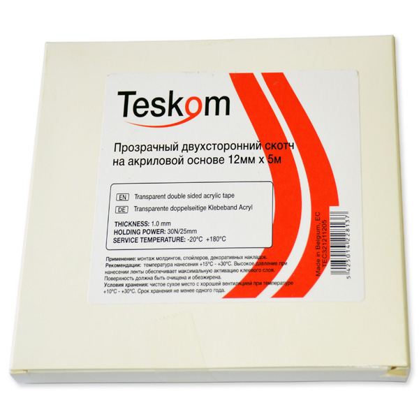 Двухсторонняя прозрачная клейкая лента с высокой адгезивной силой TESKOM TEC321211205 предназначена для установки молдингов, спойлеров и различных декоративных накладок. Качество «профи».