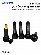 Резиновый универсальный вентиль НОРМ (TR414М) устанавливается на любые бескамерные колеса легковых автомобилей, грузовых автомобилей малой грузоподъемности, прицепы и полуприцепы, спецтехнику с диаметром отверстия в диске 11,3мм специальным инструментом. Подходит для большинства литых и штампованных дисков.