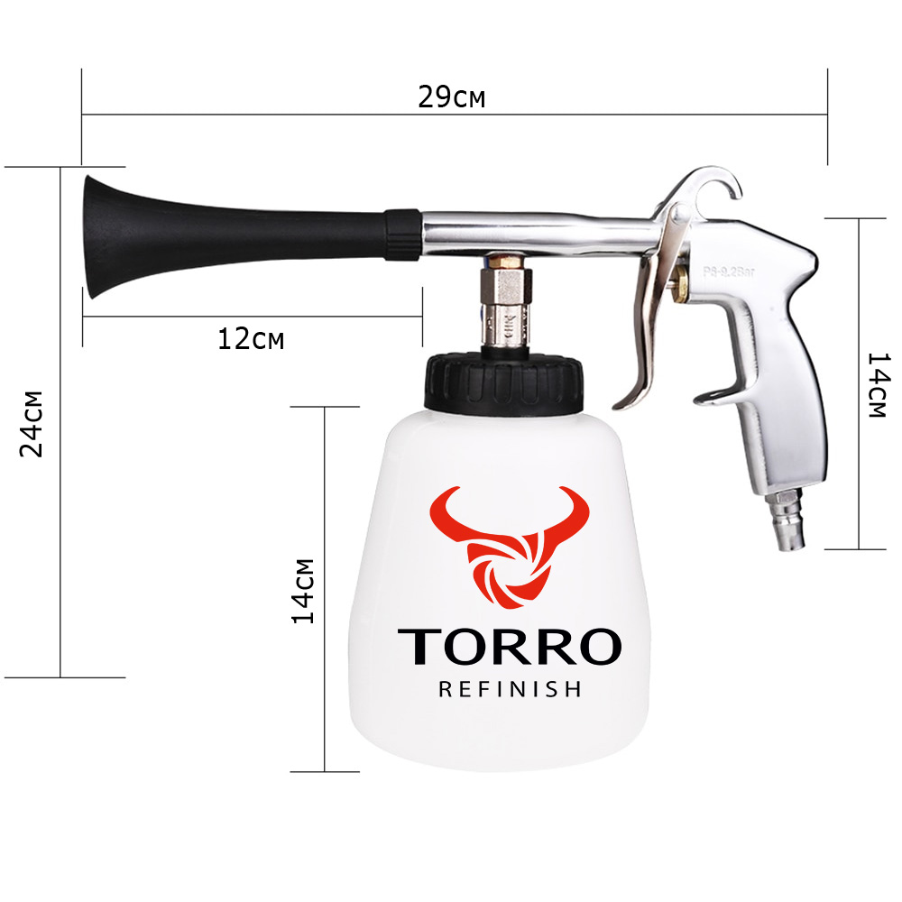 Аппарат для химчистки TORRO (TR-6101) помогает очищать труднодоступные места и воздуховоды с помощью давления и вихревого потока выбрызгивающей жидкости.
