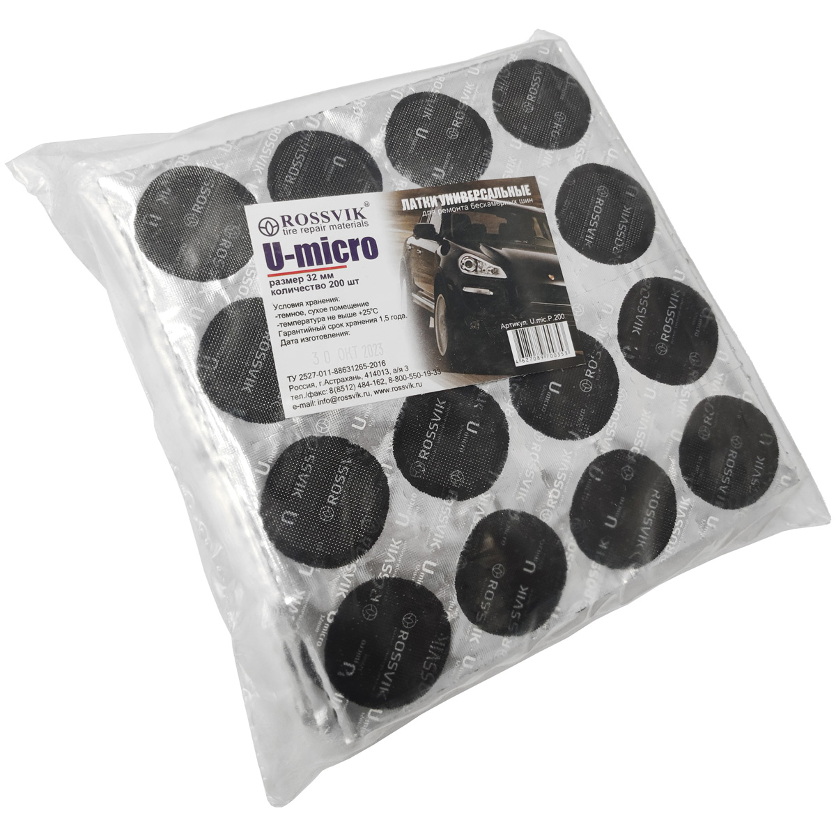 Универсальные круглые заплатки Rossvik (U-micro) применяются для ремонта любых шин радиального и диагонального типа. С омощью этиъ латок можно отремонтировать повреждение в любом месте протектора или боковой порез на покрышке легкового автомобиля, сельскохозяйственной техники, грузового пассажирского транспорта.