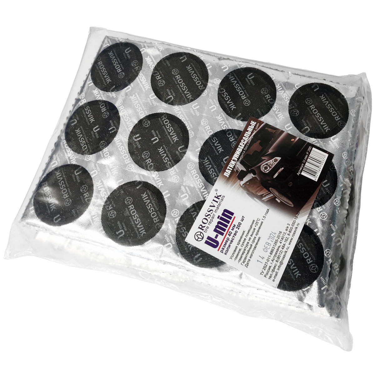 Универсальные круглые заплатки Rossvik (U-min) применяются для ремонта любых шин радиального и диагонального типа. С омощью этиъ латок можно отремонтировать повреждение в любом месте протектора или боковой порез на покрышке легкового автомобиля, сельскохозяйственной техники, грузового пассажирского транспорта.