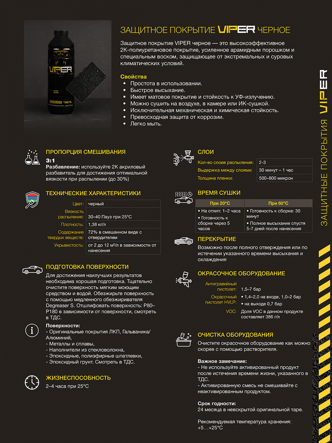 Защитное покрытие VIPER от AMAZONA PAINTS — сверхпрочное двухкомпонентное защитное покрытие премиум-класса, разработанное для максимальной защиты кузова автомобиля и любых других поверхностей, подвергающихся интенсивным нагрузкам.