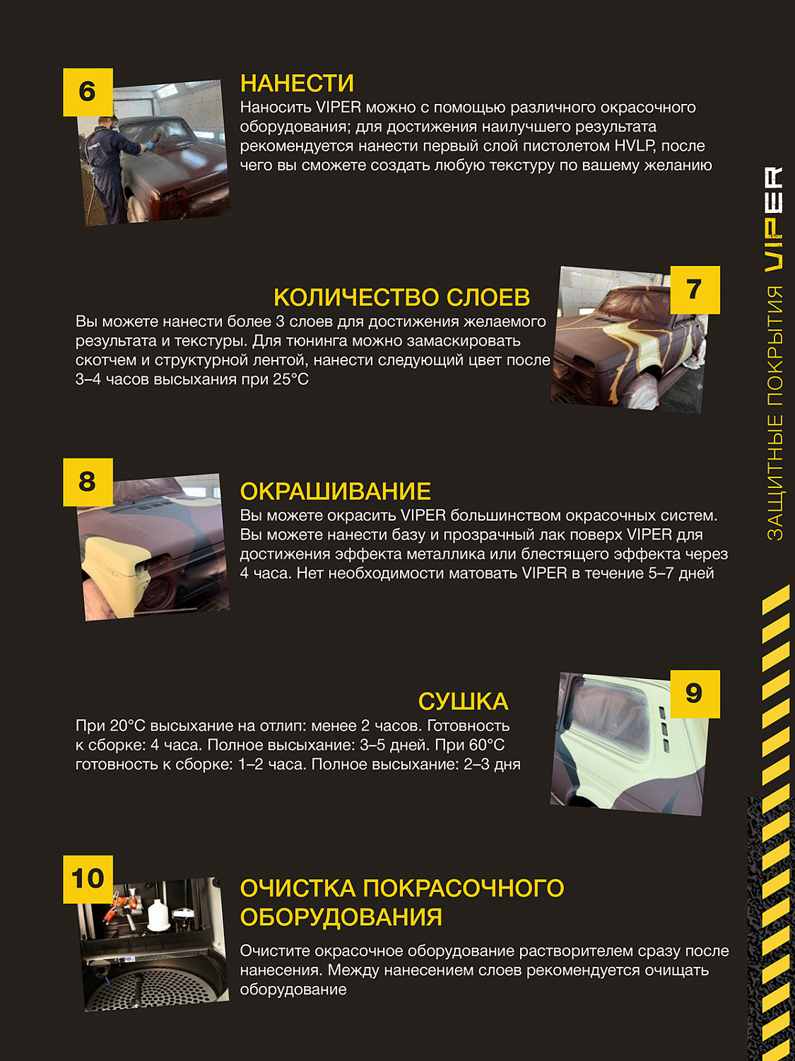 Защитное покрытие VIPER от AMAZONA PAINTS — сверхпрочное двухкомпонентное защитное покрытие премиум-класса, разработанное для максимальной защиты кузова автомобиля и любых других поверхностей, подвергающихся интенсивным нагрузкам.