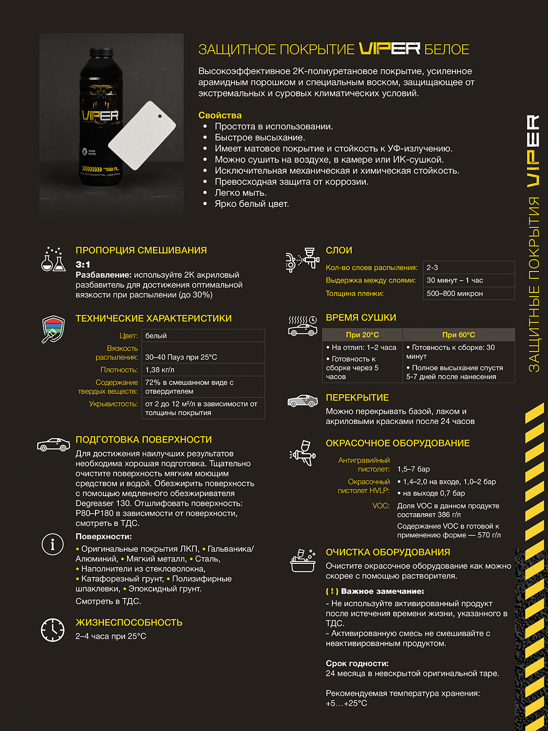 Защитное покрытие VIPER от AMAZONA PAINTS — сверхпрочное двухкомпонентное защитное покрытие премиум-класса, разработанное для максимальной защиты кузова автомобиля и любых других поверхностей, подвергающихся интенсивным нагрузкам.