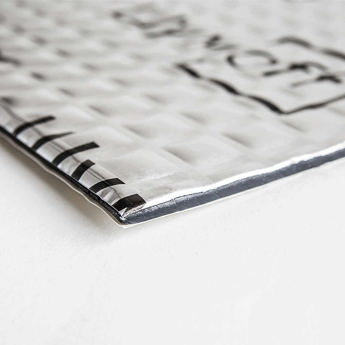 Вибропоглощающий материал премиум линейки М2 серебристого цвета ШУМОФФ - лицевое покрытие представляет собой алюминиевую фольгу толщиной 100мкм с уникальной структурой тиснения (в виде квадратов), что обеспечивает максимальную жесткость после установки. Материал НЕ битумный , мастичный! Мастика состоит из высоконаполненного полимера на каучуковой основе, что способствует максимально защитить кузов от коррозии, а также обеспечивает постоянную липкость и эластичность материала даже при отрицательных температурах. Максимальная температура, при которой виброизоляционный материал находится в стабильном состоянии - 180°С.