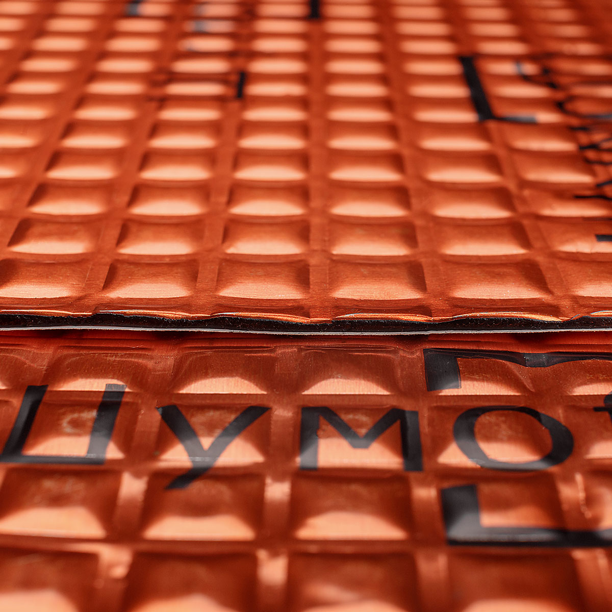 Вибропоглощающий материал премиум линейки М3 бронзового цвета ШУМОФФ - лицевое покрытие представляет собой алюминиевую фольгу толщиной 100мкм с уникальной структурой тиснения (в виде квадратов), что обеспечивает максимальную жесткость после установки. Материал НЕ битумный , мастичный! Мастика состоит из высоконаполненного полимера на каучуковой основе, что способствует максимально защитить кузов от коррозии, а также обеспечивает постоянную липкость и эластичность материала даже при отрицательных температурах. Максимальная температура, при которой виброизоляционный материал находится в стабильном состоянии - 180°С.