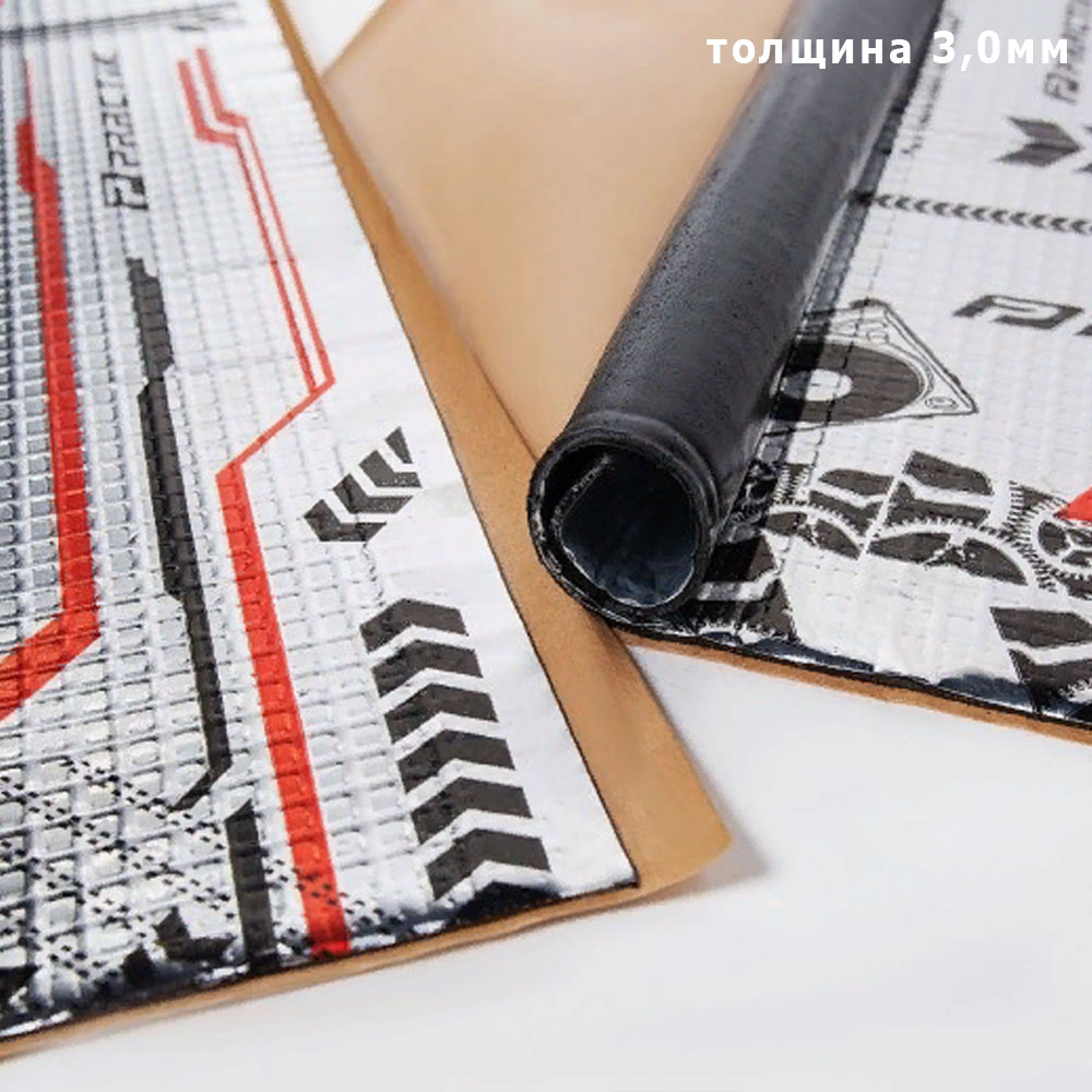 Материал вибропоглощающий PRACTIK 3,0мм 460х750мм фольгированный ШУМОФФ
